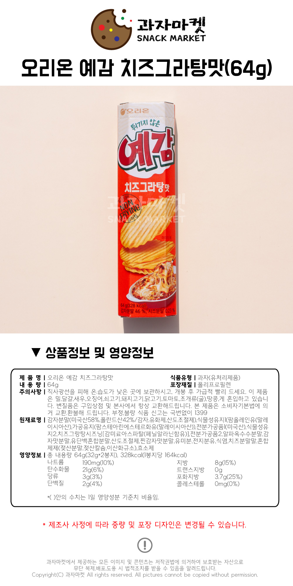 • ¿À¸®¿Â °úÀÚ¸¶ÄÏ 1500 ¿¹°¨ Ä¡Áî±×¶óÅÁ 2P 64g