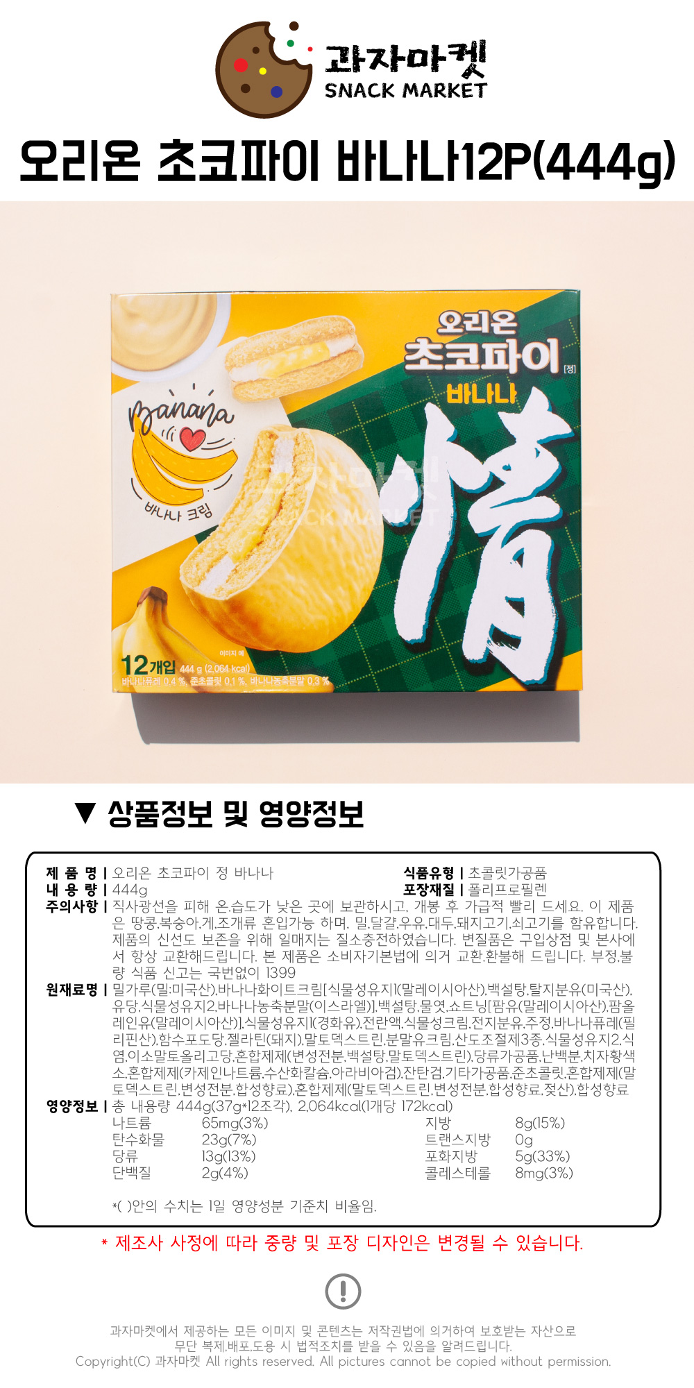 • ¿À¸®¿Â °úÀÚ¸¶ÄÏ 5400 ÃÊÄÚÆÄÀÌ ¹Ù³ª³ª 12P 444g