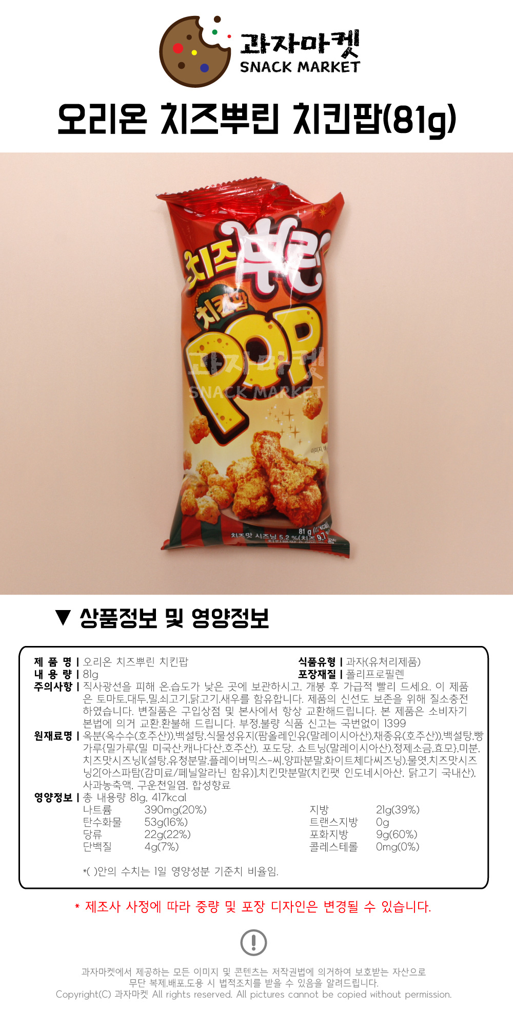 ¿À¸®¿Â °úÀÚ¸¶ÄÏ Ä¡Áî»Ñ¸° ġŲÆË 81g