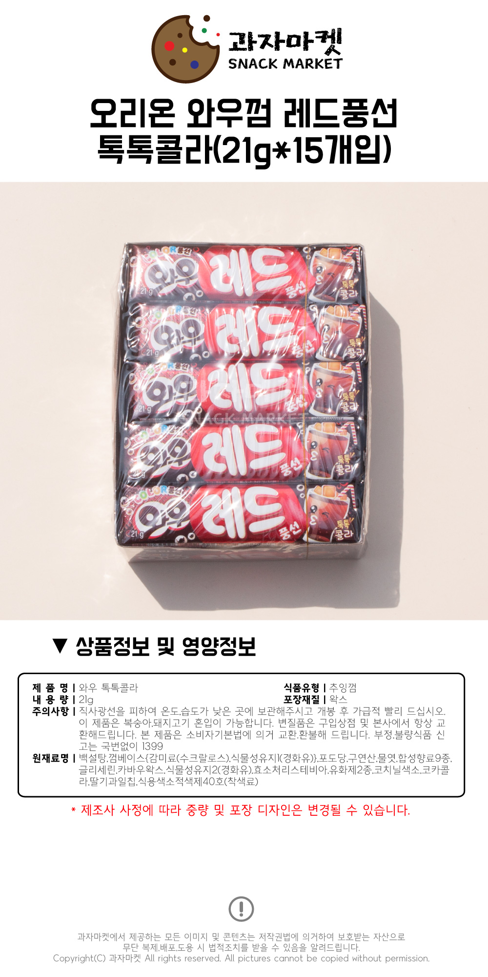 1334857 ¿À¸®¿Â °úÀÚ¸¶ÄÏ ¿Í¿ì²­ ·¹µådz¼± ÅåÅåÄݶó 500x15°³ 6000