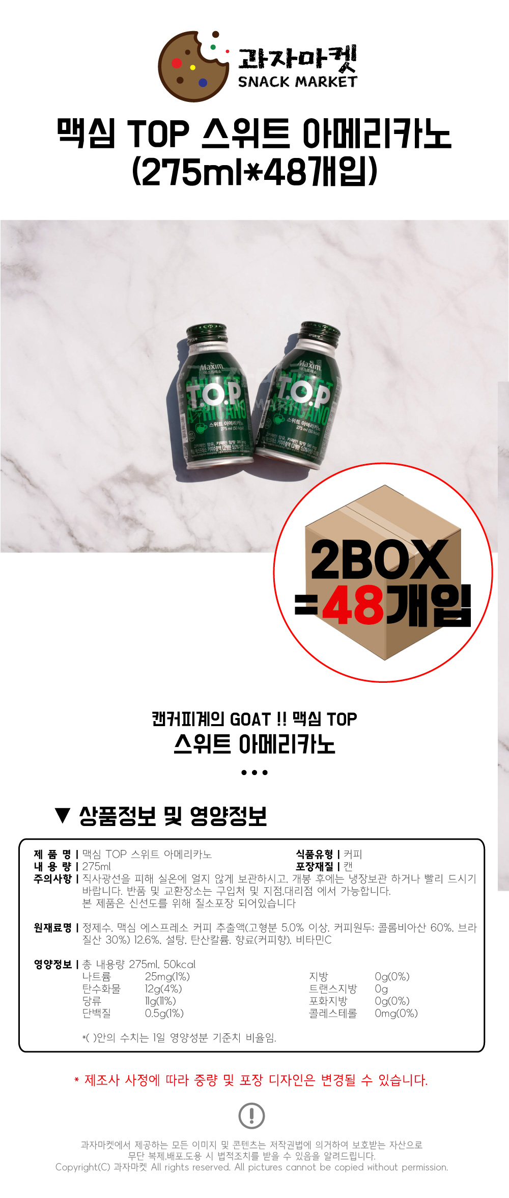 ¸Æ½É TOP ½ºÀ§Æ® ¾Æ¸Þ¸®Ä«³ë 275ml x 48ea