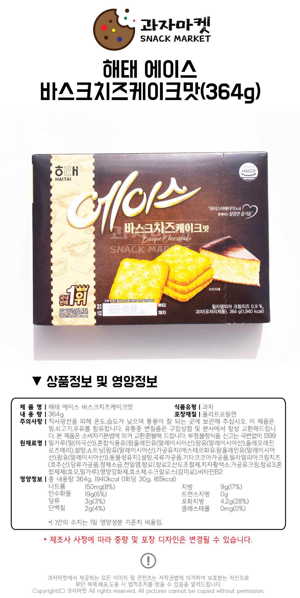 ÇØÅ °úÀÚ¸¶ÄÏ ¿¡À̽º ¹Ù½ºÅ©Ä¡ÁîÄÉÀÌÅ©¸À 364g