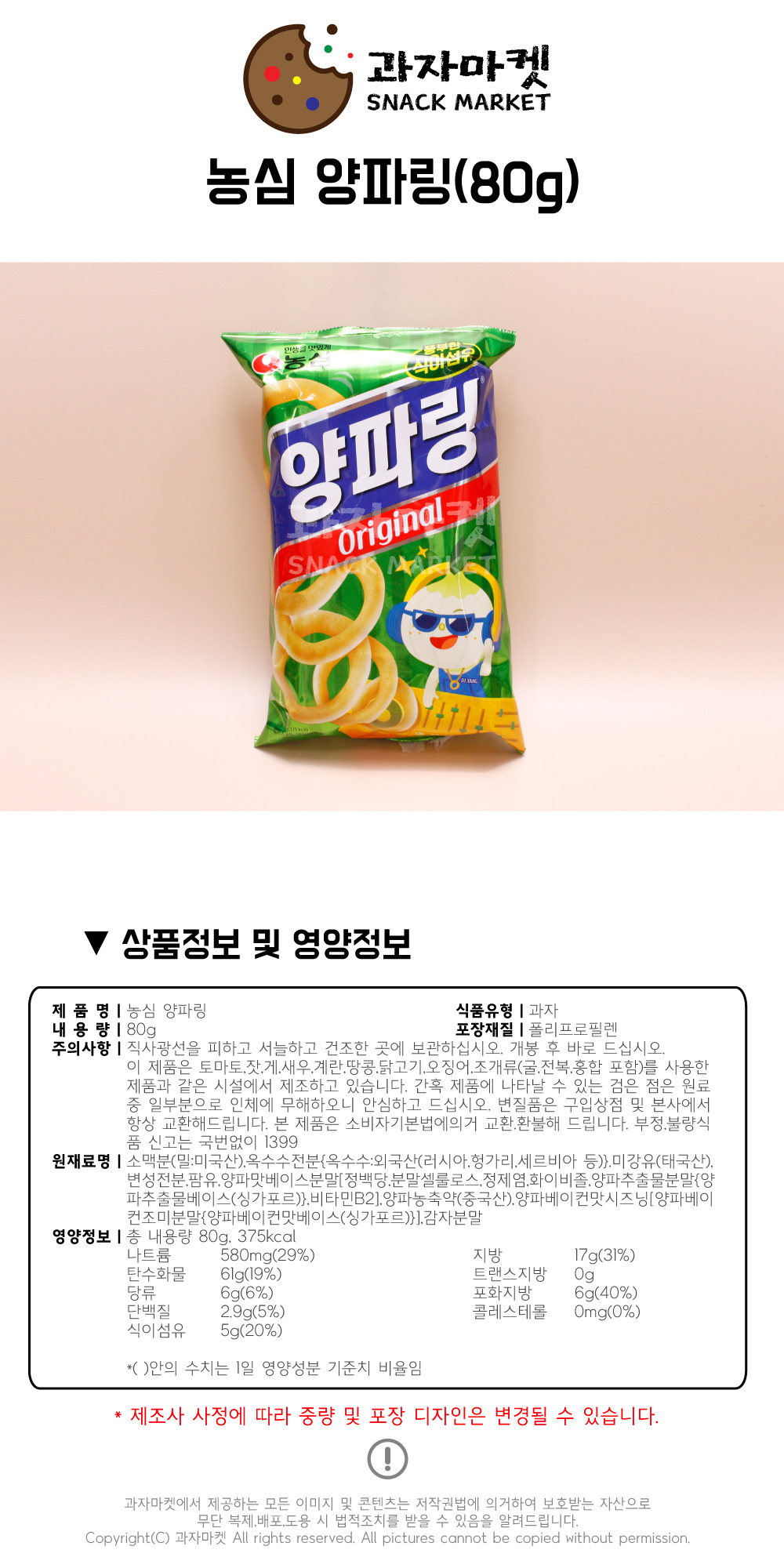 ³ó½É °úÀÚ¸¶ÄÏ 1700 ¾çÆÄ¸µ 80g