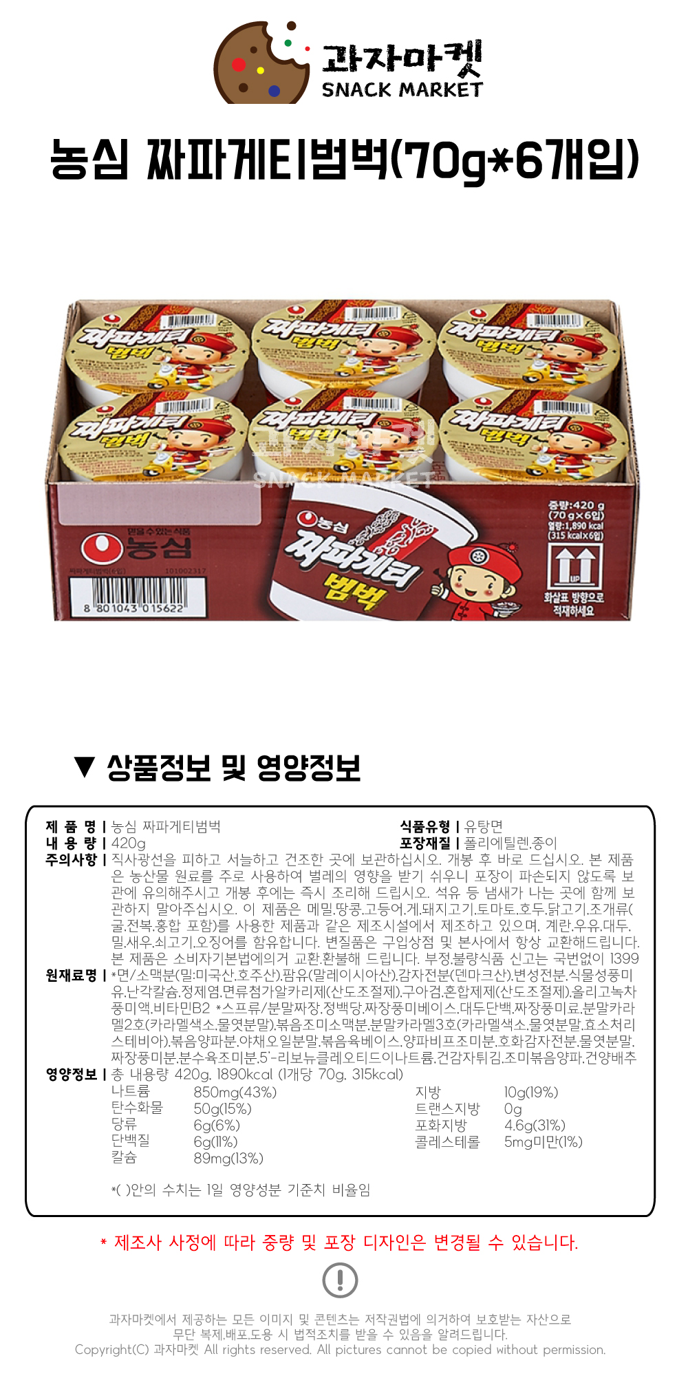 • ³ó½É °úÀÚ¸¶ÄÏ Â¥ÆÄ°ÔƼ ¹ü¹÷ 70gX6°³ÀÔ