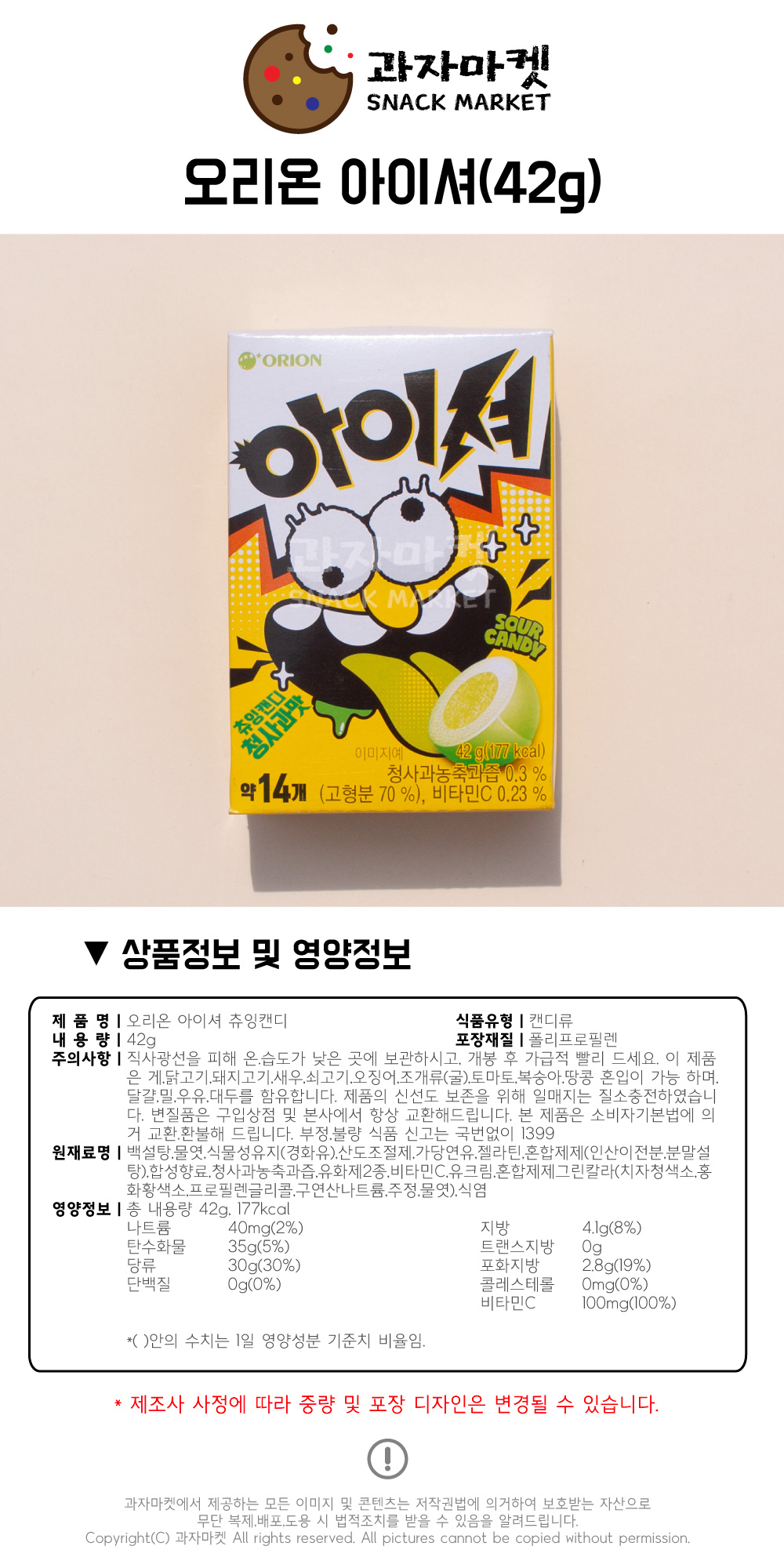 • ¿À¸®¿Â °úÀÚ¸¶ÄÏ 1000 ¾ÆÀ̼Šû»ç°ú¸À 42g