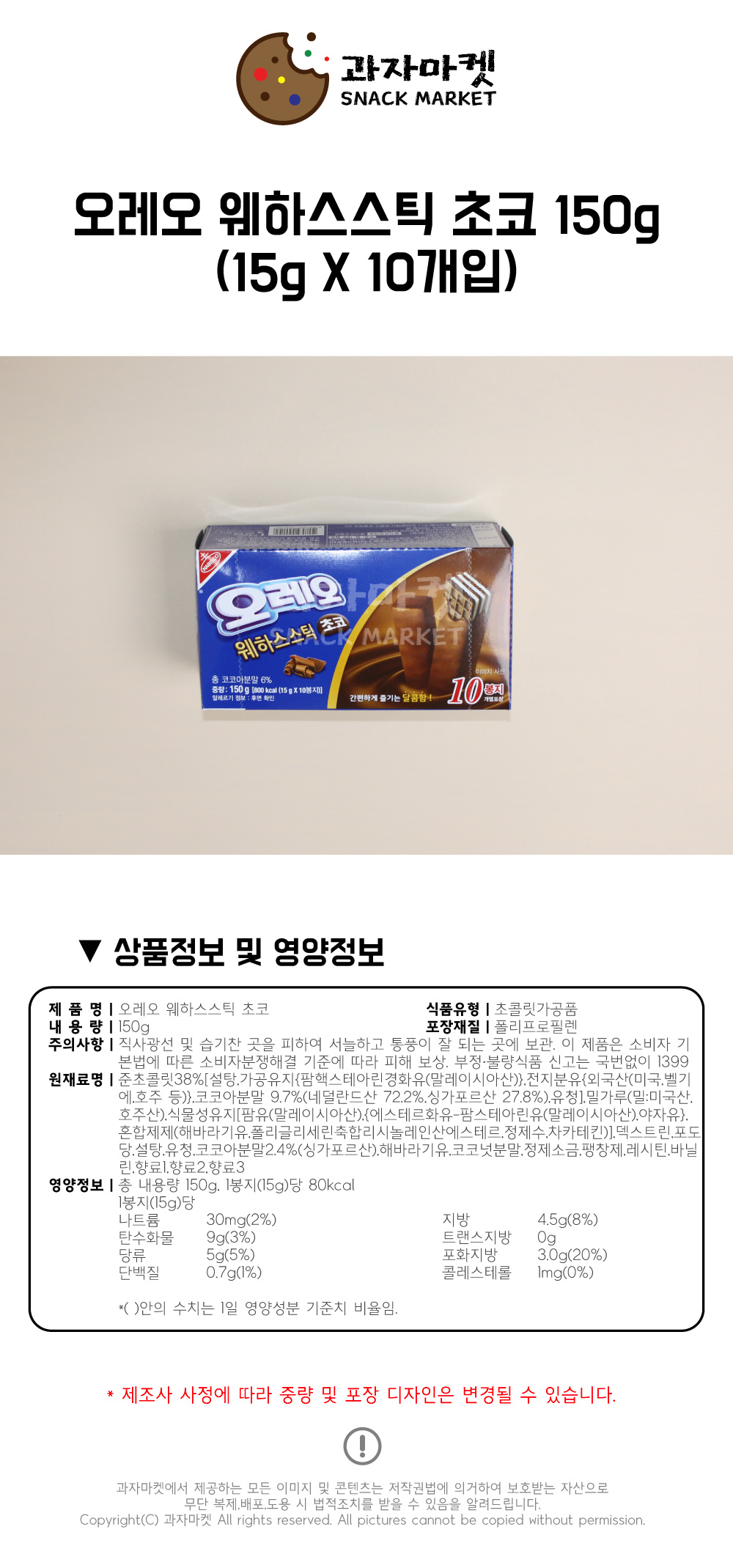 • °úÀÚ¸¶ÄÏ ¿À·¹¿À ¿þÇϽº½ºÆ½ ÃÊÄÚ 15gX10°³ÀÔ 150g